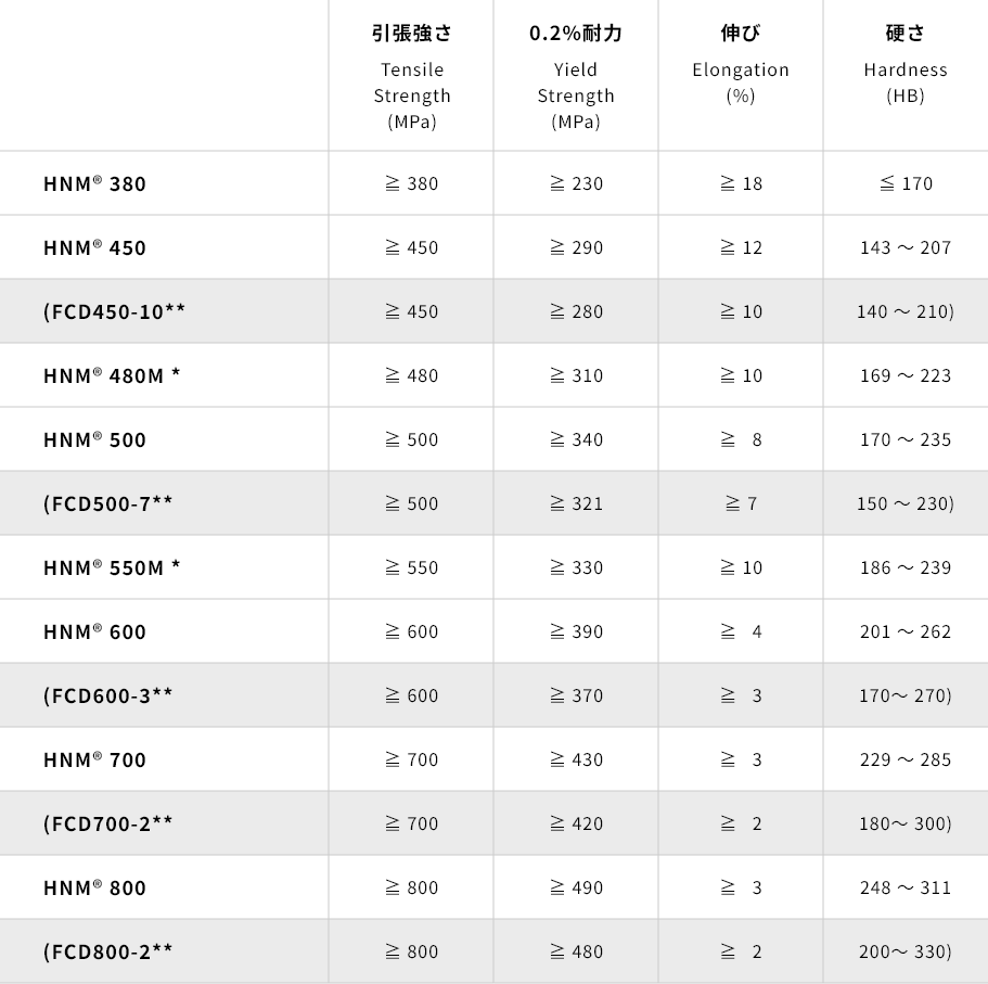高靭性ダクタイル鋳鉄 HNM®シリーズ